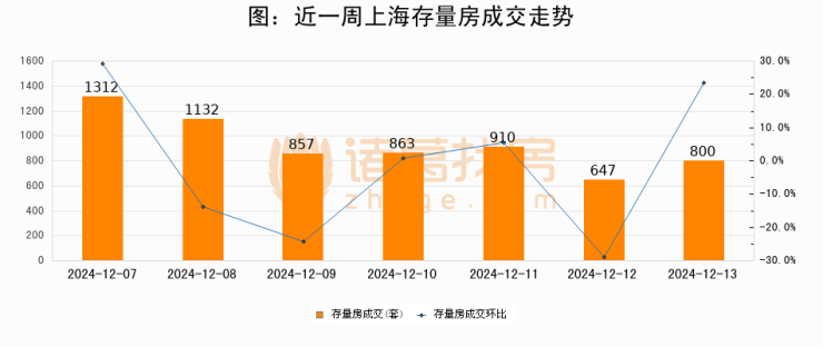 【上海成交日报】12月13日二手房800套;涨价房源297套