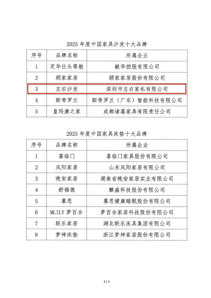 权威发布丨2025年「中国家具十大品牌」评选正式公布!左右沙发连续三年获评,尽显大国品牌卓越实力!