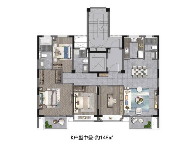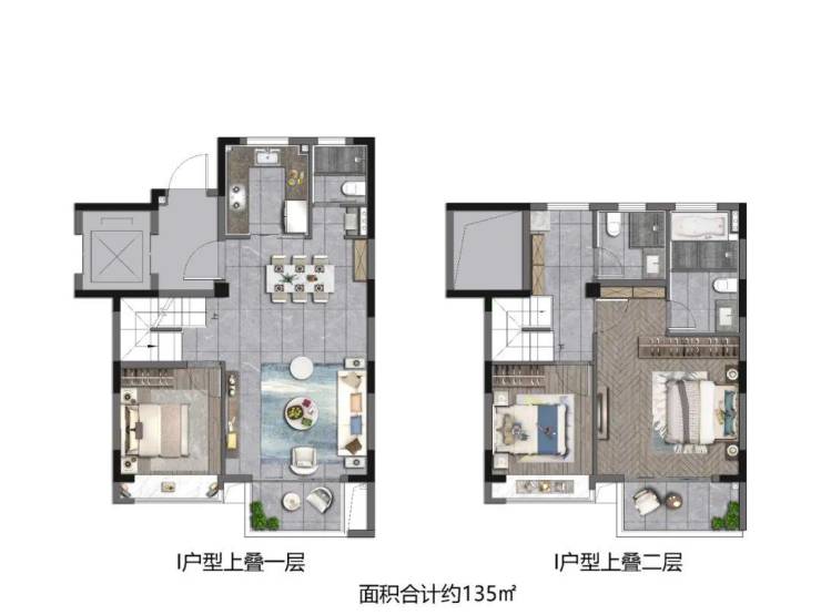 除此之外,项目还有建面约135㎡3房2厅3卫上叠、建面约148㎡4房2厅3卫中叠以及建面约148㎡4房2厅3卫下叠。