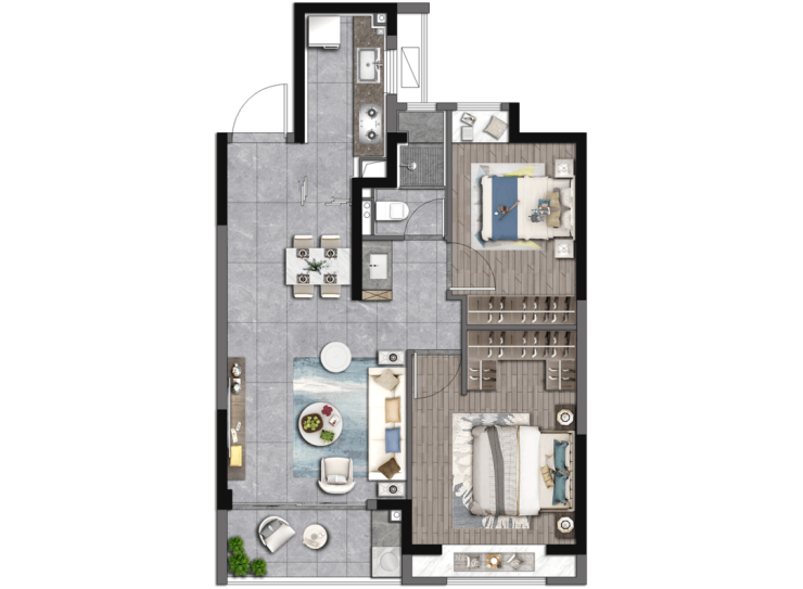 “2卫”设计,比常规建面90㎡左右户型多配置一个卫生间,并且干湿分离,有效解决“排队上厕所”的生活痛点