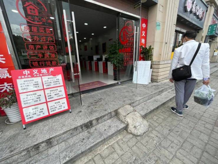 在普陀区武威东路一处中介门店前,一位路人正看着新挂出的房源。这家门店代理附近的荣和怡景园、华公馆、圣都汇等小区,广告牌展示着“今日笋盘”,以及各种惊爆价299万元、710万元等。