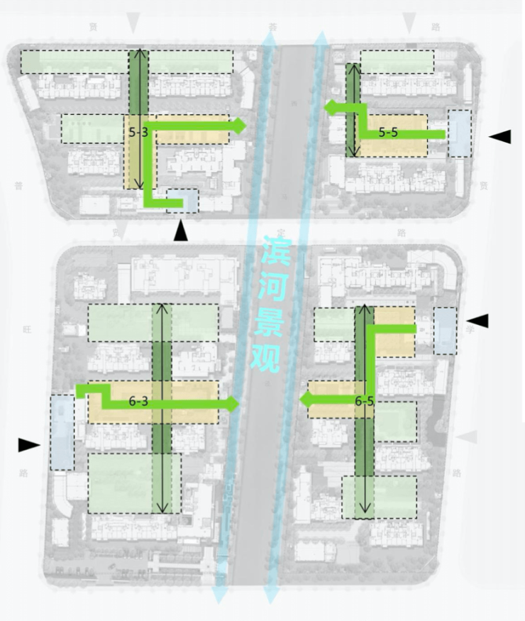 除此之外因为有市政道路的介入,在整个地块内就天然的形成了