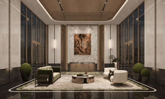 以传统归家礼仪融汇到现代人居的美学表达,于起承转合的景观空间秩序间,打造从回家到入户每一步的尊崇,以精奢酒店式归家礼序,呈鉴圈层生活仪式感。