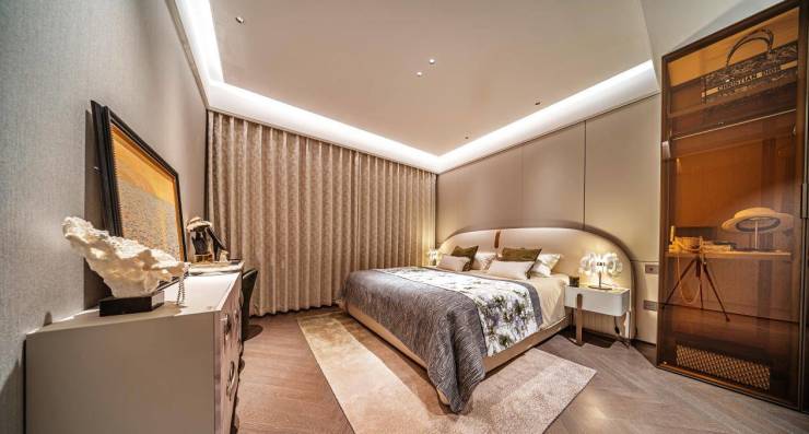 星级主卧套房,配备270°转角飘窗+步入式衣帽间+独立卫浴,不仅延伸了空间感,同时舒适度与私密性兼具。