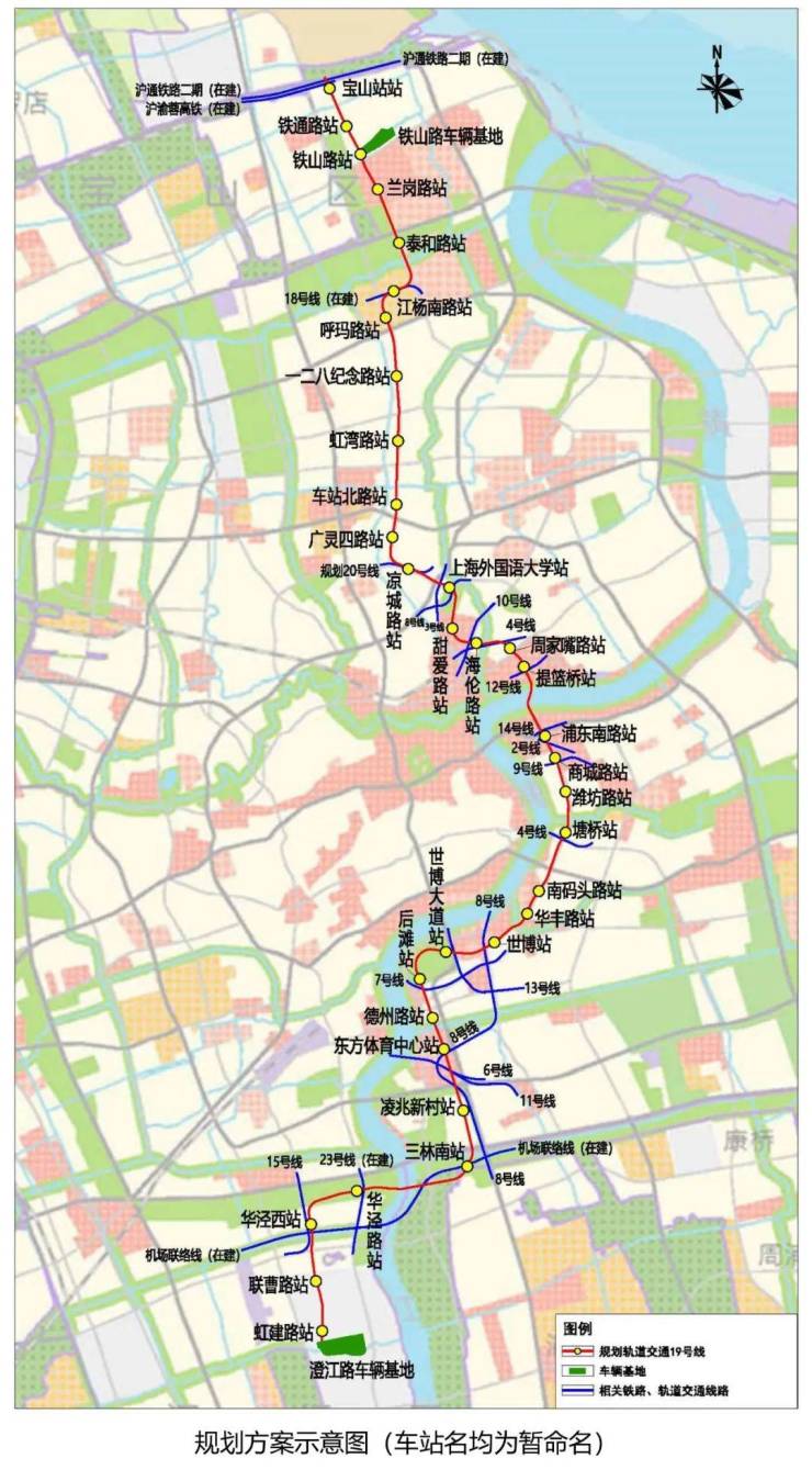 19号线北起宝山站站,宝山站未来将是沪崇铁路、宝嘉铁路、江苏沿江高铁的始发站,建成后将成为上海第四大火车站。
