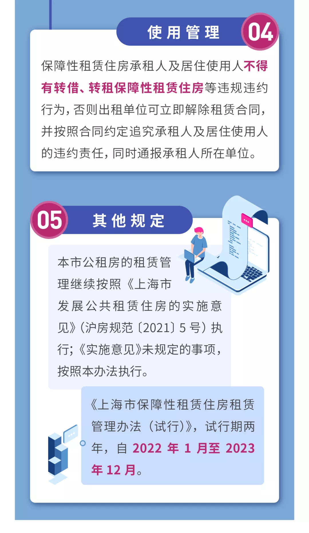 1月18日,上海出台《上海市保障性租赁住房租赁管理办法(试行)》和《上海市保障性租赁住房项目认定办法(试行)》,明确了保障性租赁住房的认定及申请门槛、配租规则、租赁价格、支付手段、租赁期限等细节。两项配套政策有效期为2022年1月至2023年12月,试行期两年。
