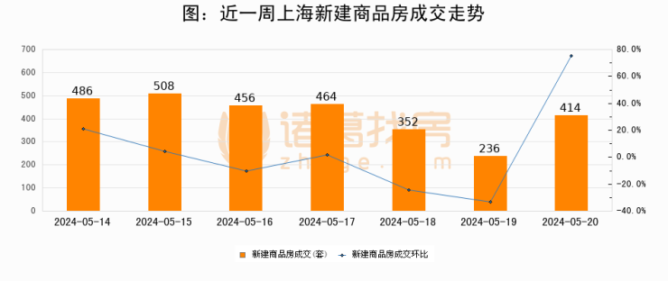 【上海成交日报】05月20日新房成交414套;涨价房源130套