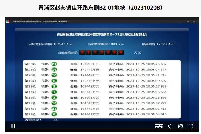 10月25日上午,上海第三轮土拍中“最抢手”的青浦区赵巷镇佳环路东侧B2-01地块完成出让。上海土地市场官网对该地块的出让过程进行了全程直播。