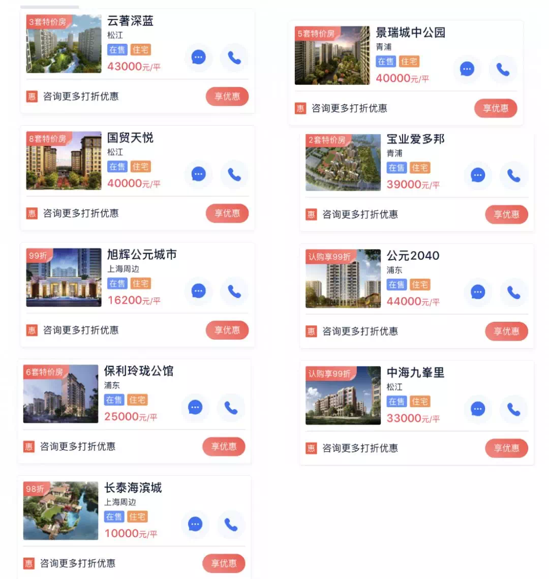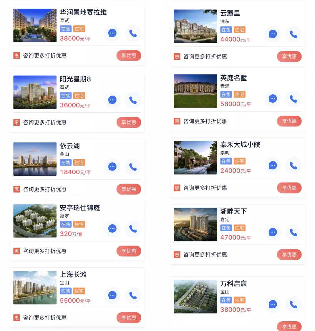 特惠靓房,较高可减50万本次明星好房季上海链家新房联合万科、旭辉、国贸、保利、长甲、华润、碧桂园、泰禾等众多品牌开发商,为上海用户推出多个优质项目,共有特惠靓盘、刚需好盘、品质改善、环沪低价不同受众的29个项目,其中有9个楼盘推出购房折扣、特价房源等较高立减50万的优惠。特惠靓盘