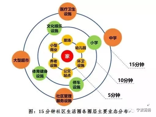 15分钟生活圈是以步行15分钟作为社区生活的空间尺度,围绕社区居民日常衣、食、住、行进行规划布局。