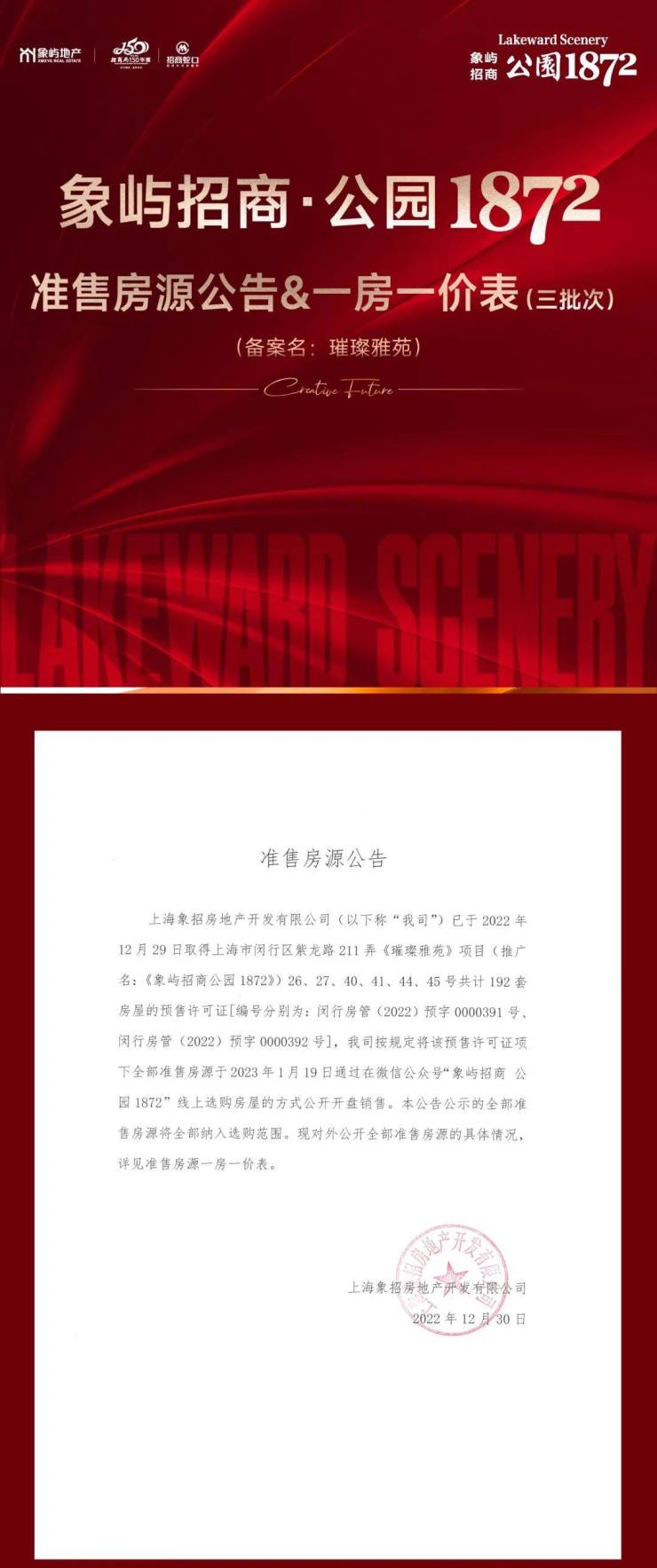 最新消息!象屿招商公园1872已取证,将于12月31日开启认购!