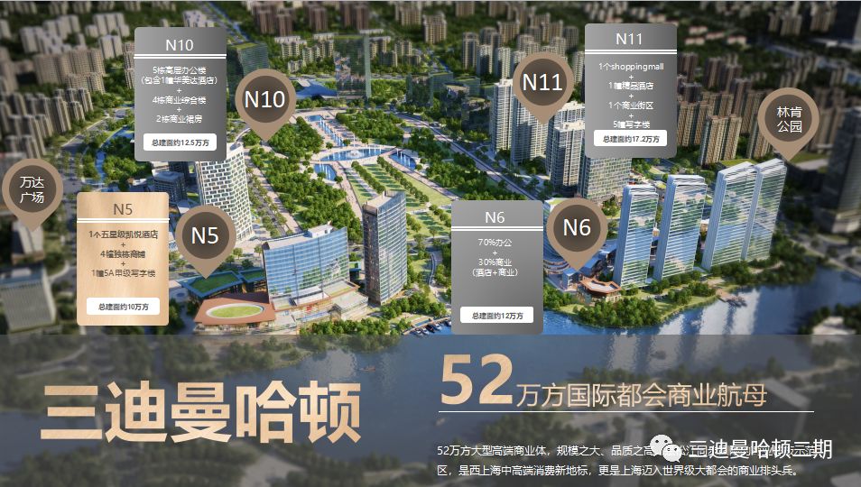 N5地块总建面积约10万方,绿化率:35%,属于整个三迪曼哈顿项目的标杆产品,是以新都市生活体验中心的定位引领整个板块的高度。