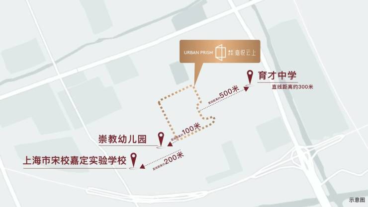 直线距离约100米崇教幼儿园,直线距离约200米上海市宋校嘉定实验学校,宋校目前唯一公办九年一贯制,直线距离约500米育才中学(市重点高中)教育资源优渥。