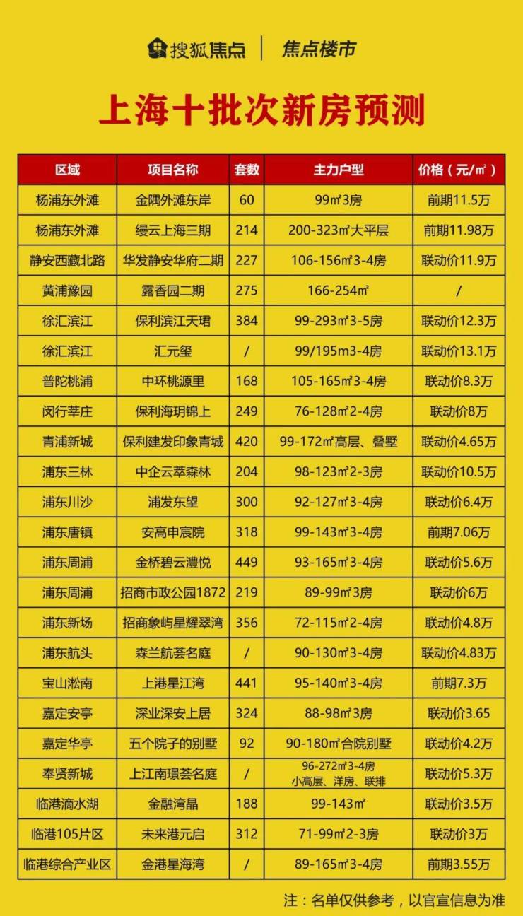 上海十批次预测名单出炉,多个重磅新盘有望入市!