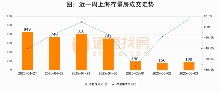 【上海成交日报】05月03日二手房180套;涨价房源124套