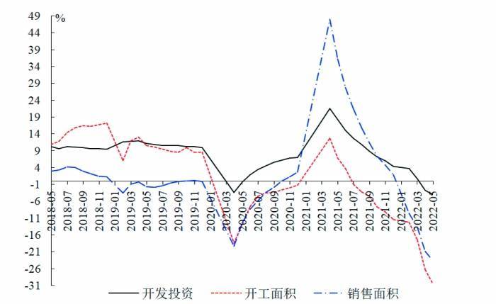 另一方面,国家统计局数据显示,房地产开发投资、新开工和销售面积累计同比增速持续下滑。1至3月房地产开发投资同比增速回落至0.7%,1至4月、1至5月房地产开发投资分别同比下降2.7%、4.0%,降幅进一步扩大;1至5月房屋新开工和商品房销售面积分别同比下降30.6%和23.6%,房地产投资和消费景气度1年来呈持续回落趋势;前5个月房地产企业到位资金累计同比降幅超过25%,为有统计数据以来的较大降幅。
