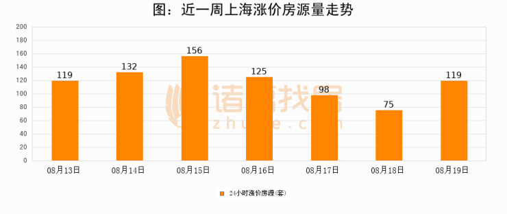根据诸葛找房数据显示,上海24小时涨价房源量为119套,较08月18日增加44套,环比上涨58.7%。与此同时,涨价房源占比小幅扩大,业主信心有所提升。