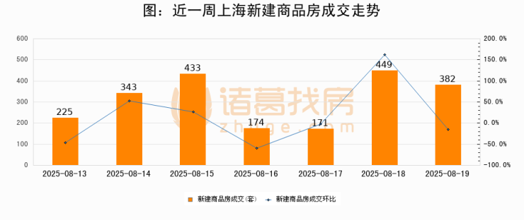 【上海成交日报】08月19日新房成交382套、二手房528套;涨价房源119套