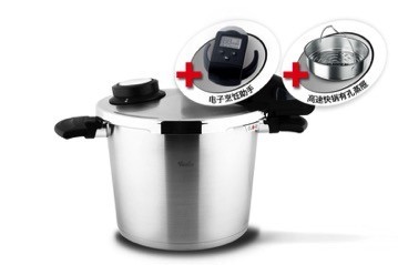 菲仕乐的阿波罗高速快锅,销售过亿至今零事故,采用18/10的医用高标不锈钢制成,拥有芳香阀,辅助泄压孔,特质硅胶圈,压力指示器,安全阀,主阀门等安全措施, 要特别说的一点是,菲仕乐阿波罗高速快锅还配有一个电子烹饪小助手,宝贝可以根据LED显示屏上的烹饪时间和信号控制火炉,用起来更放心。