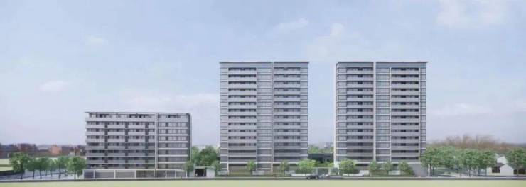 项目包括2栋16层高层住宅、1栋9层保障房、少量联排合院。高层主力户型建面约99㎡3房2厅2卫,联排合院约200-280㎡。