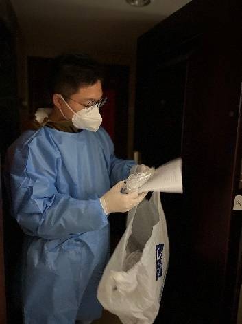 小区每天的物资一批接一批,我的工作主要就是保障安全问题和运送问题。针对所有抵达的物资,进行全方位彻底的消杀,然后再分拣和配送。随着被封控的楼栋越来越多,导致可以外出的志愿者人数减少,运力降低,物资运送的工作量越来越大。但每当收到来自邻居赠送的酒精喷雾、口罩和食物时,就觉得每天的辛苦也值了。