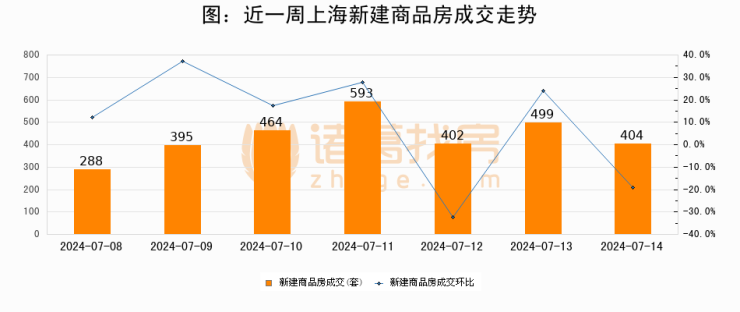 【上海成交日报】07月14日新房成交404套;涨价房源85套