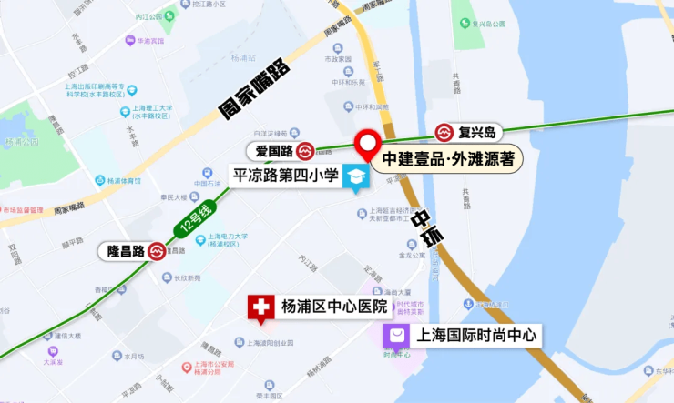 中建壹品·外滩源的交通条件十分优越。项目距离12号线爱国路站直线约400米,步行可达,这在杨浦东外滩一众不靠轨交的项目中是非常难得的。通过12号线,可畅达北外滩、南京西路、人民广场等核心CBD。