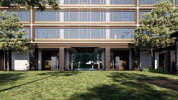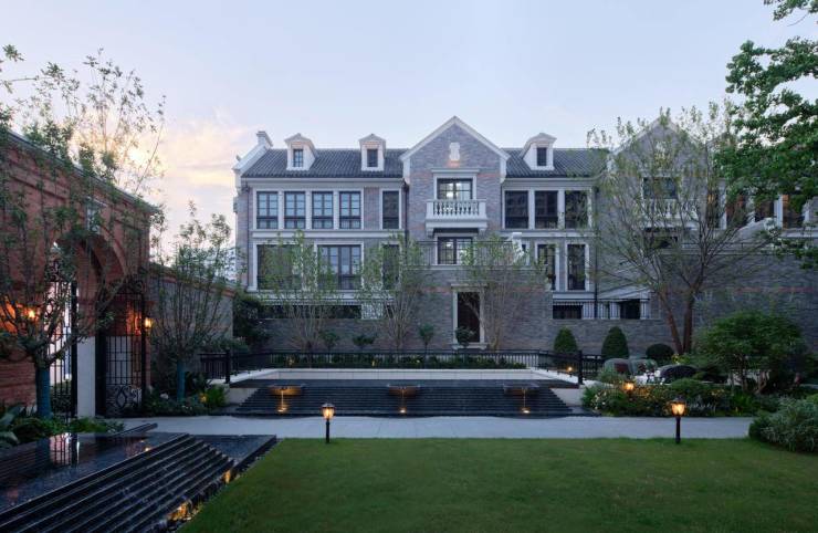 项目沿用三段式古典比例,结合上海文脉和时代感,打造更轻盈的法式风情。洋房立面局部增加红砖,让她更有上海特色;在合院立面巧妙地融入金属型材线条,让建筑显得更加精致挺括。同时,借助土地自然的高低错落,把江面还给住户,实现法式建筑的演绎与升华,成就海派建筑的时代新范式。