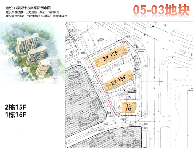 05-03地块住宅新建项目住宅3栋,地上15层。规划用地面积为12675.8平方米,总建筑面积为48723.39平方米,地上建筑面积为26916.99平方米,地下建筑面积为21806.4平方米。