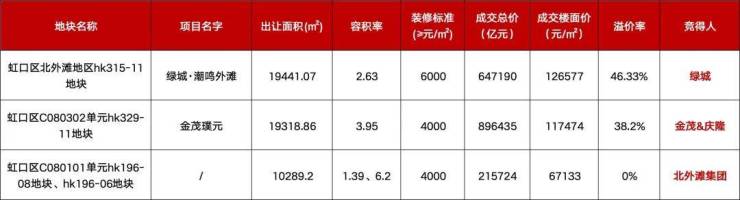 在此之前,该公司还以协议方式拿下虹口区北外滩区域三宗旧改地块,成交总价为35.98亿元,平均楼板价为64238元/㎡,后续由建发接手操盘。