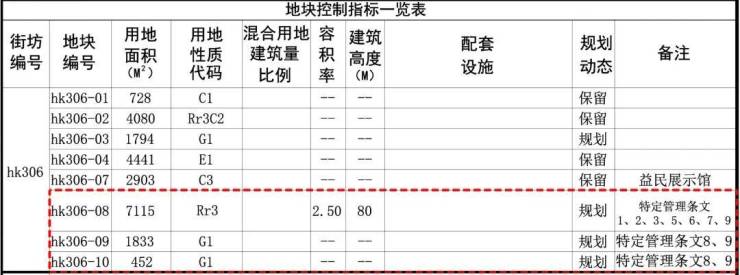 调整后的hk306-08地块,占地面积约7115㎡,容积率上限为2.5,地上计容建筑面积约1.78万㎡,建筑限高为80米。