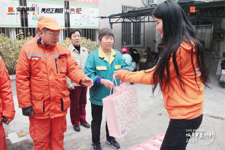 为了表达对他们的感谢和支持,在寒冬来临之际,金地智慧服务上海公司与金地安徽开启了“城市关爱计划”,向环卫工作者们致以温暖的关爱和真诚的感谢。