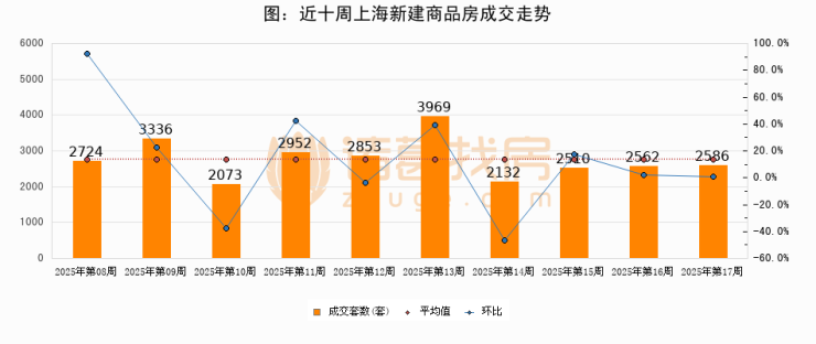 【上海成交周报】第17周新房成交2586套,二手房5740套,涨价房源1018套