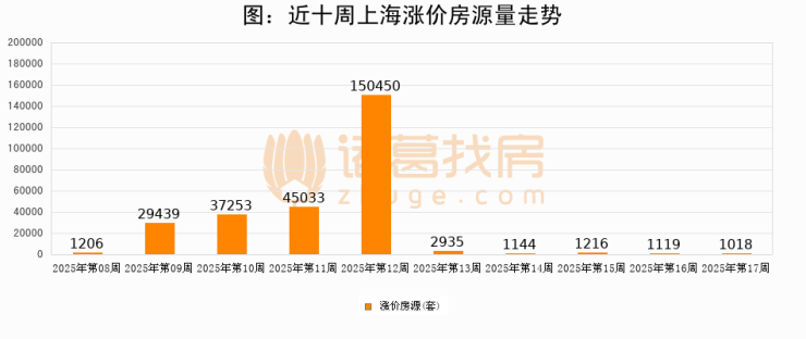从调价房源来看,第17周上海涨价房源1018套,较上周下降9%。与此同时,17周涨价房源占比回落1.69个百分点,业主信心小幅波动,购房者可则需入市。