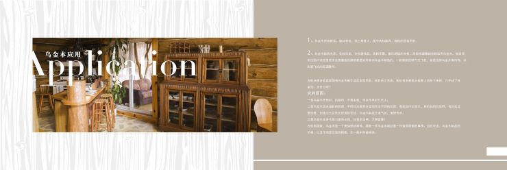 人们欣赏乌金木,最初始于其木纹的华美。乌丝金丝丝丝交错,行云流水般,在木材之上书写一幅大气的画卷,其纹理又如同斑马身上流动的斑纹,动感十足,带来西非独有的狂野浪漫;其色泽焕发金属感,炫彩夺目,是一种时尚感十足的木材。