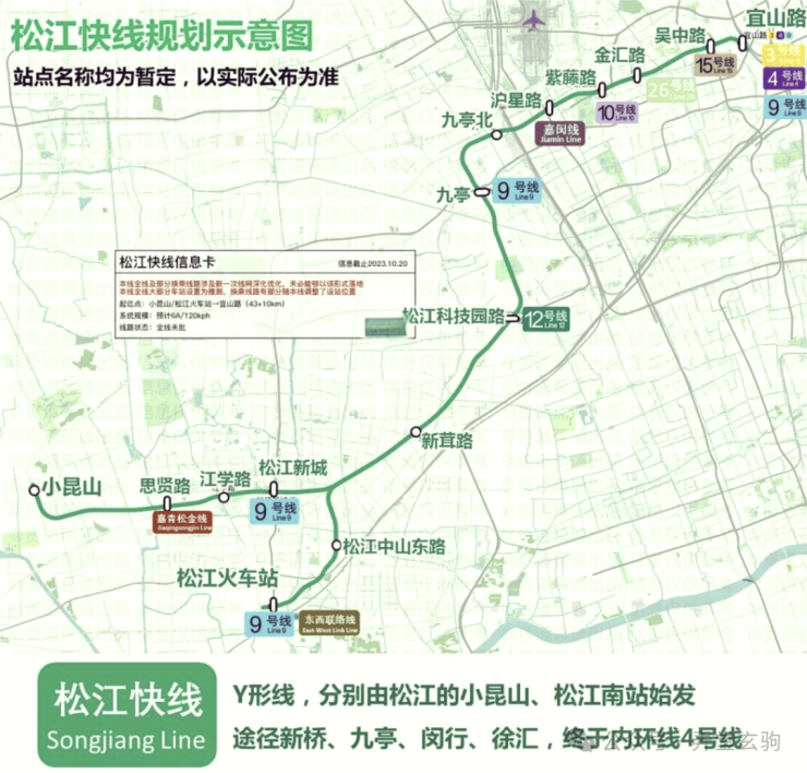 无论最终采用何种方案,松江快线均将采用市域铁路标准(最高时速160公里/小时),较9号线缩短近半通勤时间。