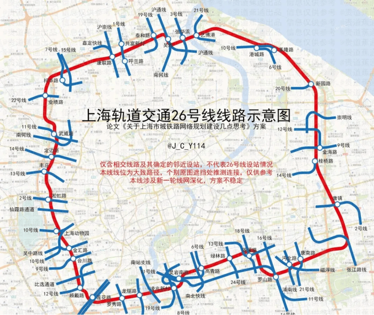 作为上海第二条轨交环线,26号线一直在社会层面广泛讨论。最早的版本,26号线串联起的重点地区有:漕河泾开发区、临空园区、桃浦开发区、市北高新区、杨浦滨江、沪东金滩、金桥副中心、张江副中心、孙桥、新杨思、徐汇滨江等。
