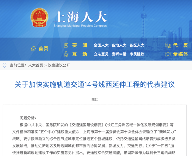 近日,上海人大公布了陈虹代表《关于加快实施轨道交通14号线西延伸工程的代表建议》其中透露了不少重磅消息!