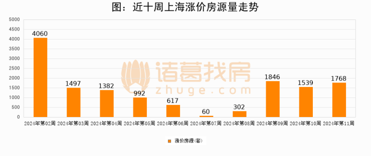 从调价房源来看,第10周上海涨价房源1768套,较上周上涨14.9%。与此同时,10周涨价房源占比回落0.79个百分点,业主信心小幅波动,购房者可则需入市。