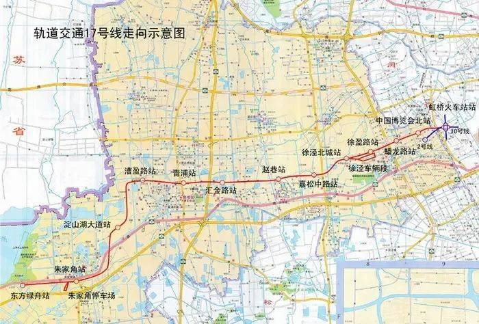 地铁17号线一路经过徐盈路站(新开业的天空万科广场)、蟠龙路站(蟠龙天地)、诸光路(国家会展中心)、虹桥火车站(虹桥商务区)并无缝换乘2号线。