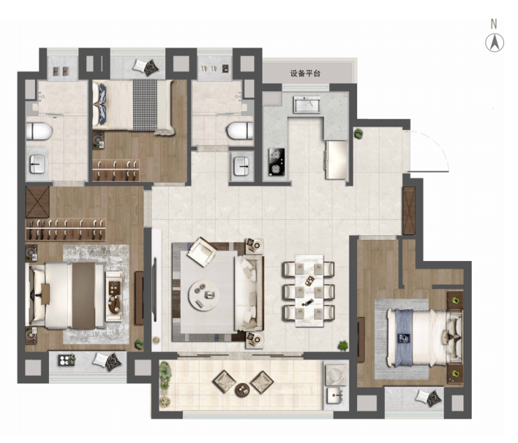 建面约98平的3房,堪称一步到位首选,三开间朝南,双卫套房设计,空间布局合理,且尺度不小,是兼具舒适性和功能性的最受欢迎3房户型。