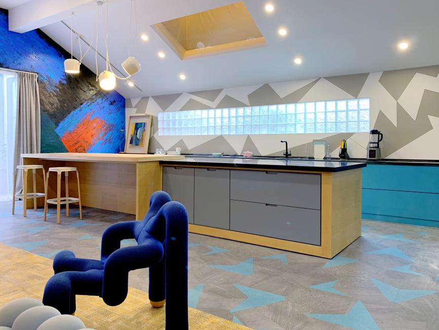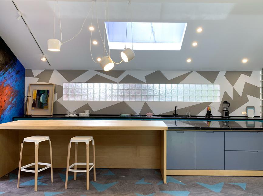 餐厅和客厅两片公共区域里,前有高饱和度的时尚之彩,后有马卡龙色系的清新,再看看餐厅里的开放式长岛台,目测特别有超五米!小编总算是get到一菲“没有差房型,只有差设计”的迷之自信了!有黄珊老师这样的大神,当然是没在怕的啦~毕竟正如一菲所说,缺陷是可以靠智慧弥补的嘛!