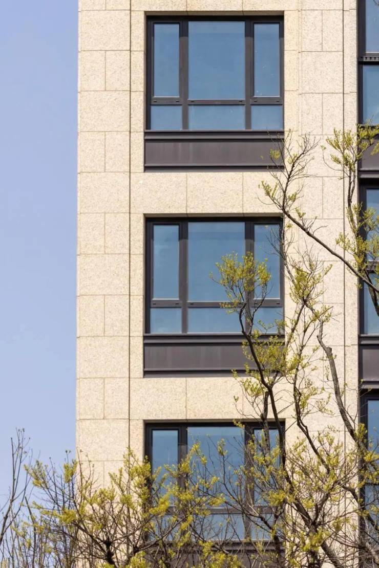 首先从建筑外观看,紫薇之星一改紫薇花园系列红墙立面,外立面采用浅色系全石材干挂外立面,巴西都伯斯金麻、宏宇金麻,搭配铝板线条,给人沉稳挺拔、时尚大气之感。