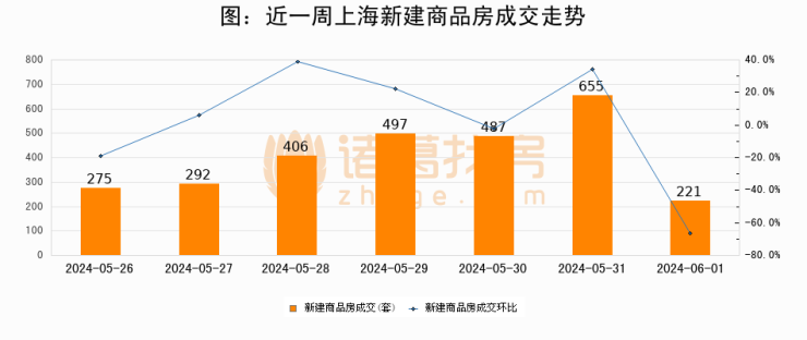 【上海成交日报】06月01日新房成交221套;涨价房源242套