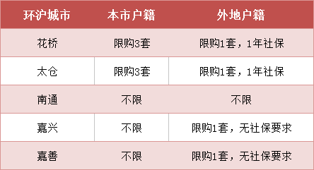 限购力度从强到弱:花桥=太仓>嘉兴=嘉善>南通