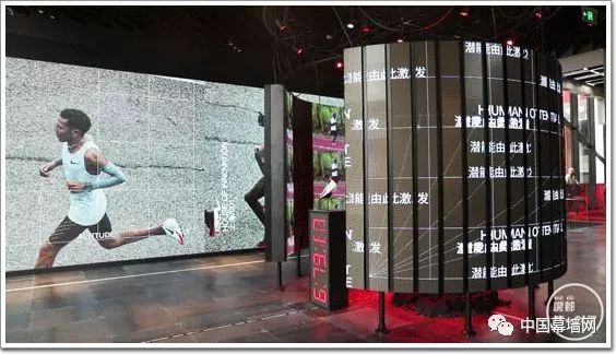 耐克001旗舰店的建筑玻璃幕墙,打破传统大板玻璃的设计格局,独创采用大面积“气垫玻璃”, 灯光照射下高平整度与富有“动感的气泡”相结合,更是相得益彰、引人入胜,优质向世人阐释了作为全球一个耐克高端旗舰店的独特之处。