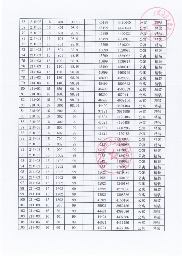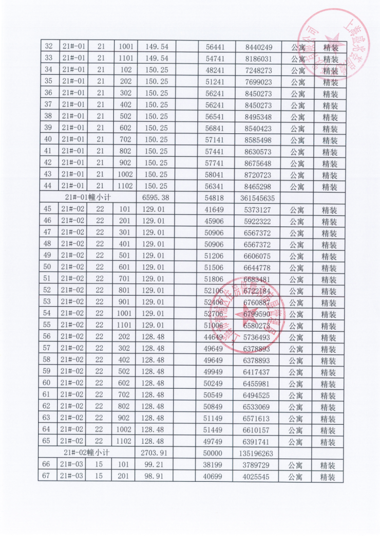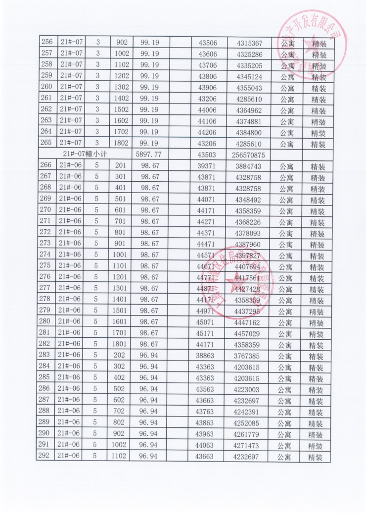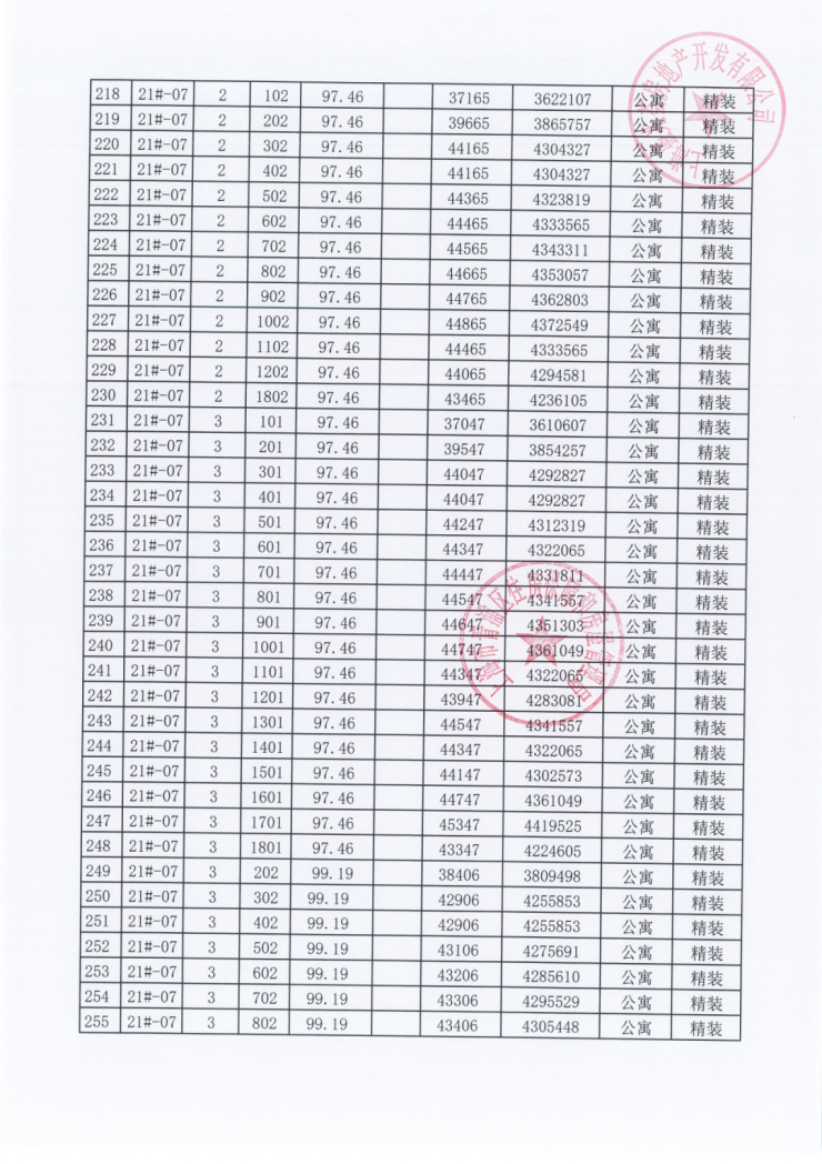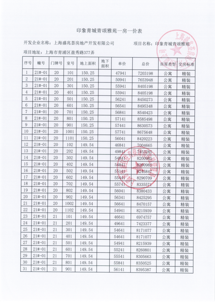 一房一价表: