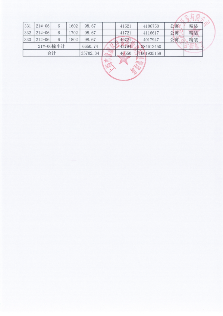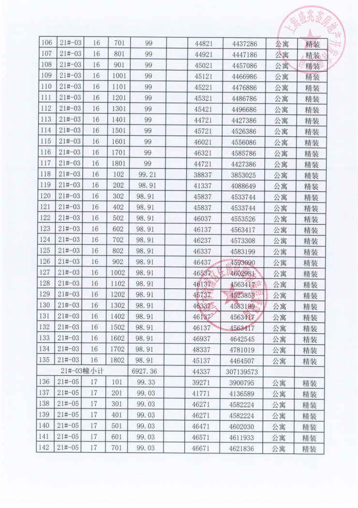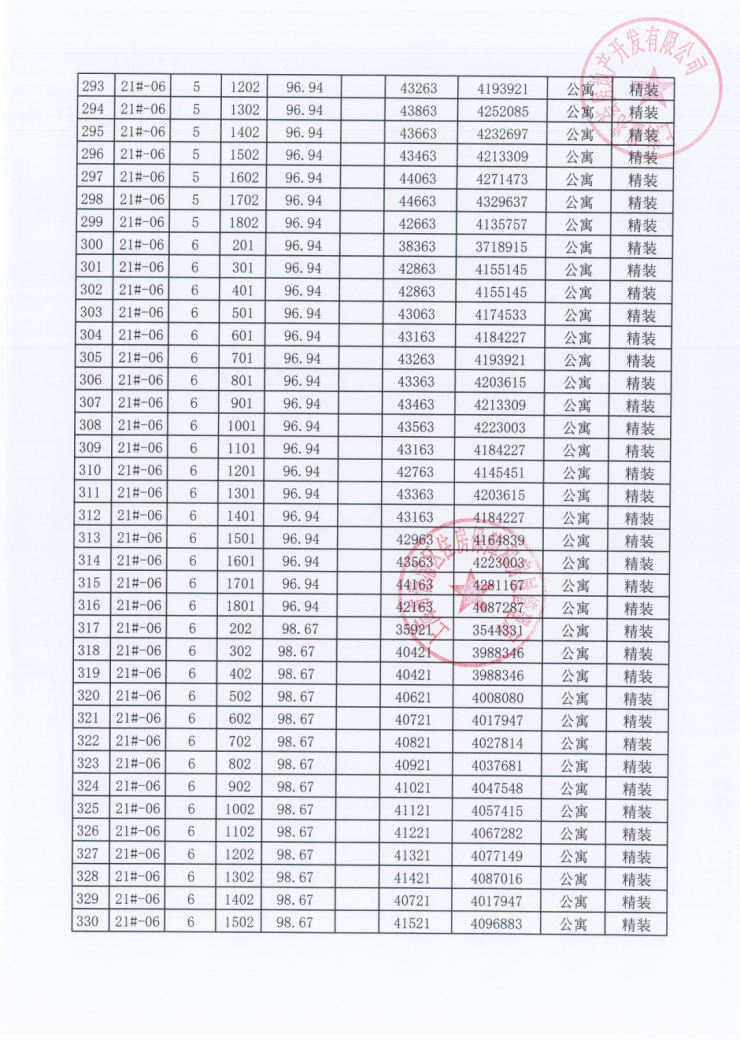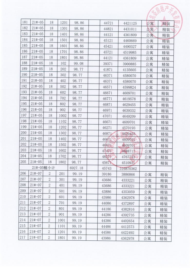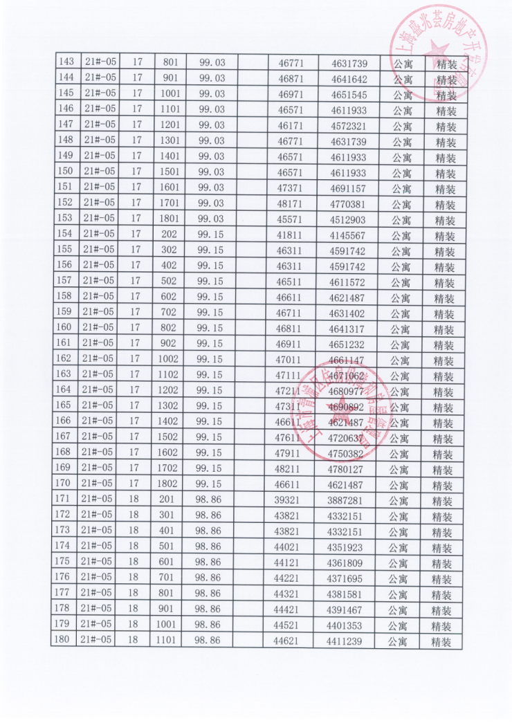 一房一价表: