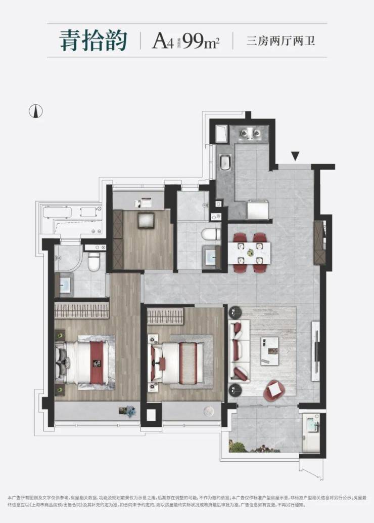 建面约99㎡ 三房两厅两卫