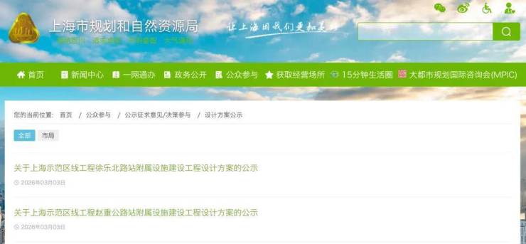 3月3日,市规划和自然资源局网站同步公示了上海示范区线工程的赵重公路站与徐乐北路站两个站点的附属设施建设工程设计方案。